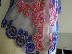 豪華なレースが見頃、裾周り(後ろまでぐるりとあります)、袖口に使われています。 サイズは日本サイズ9号くらいです。多少伸縮する生地なので多少のサイズオーバーはカバーできます。 在庫1枚です。 ・モニター上の色再現には気をつけておりますが、どうしても実物と違いが出ます。実物はとても味わい深い色合いです。